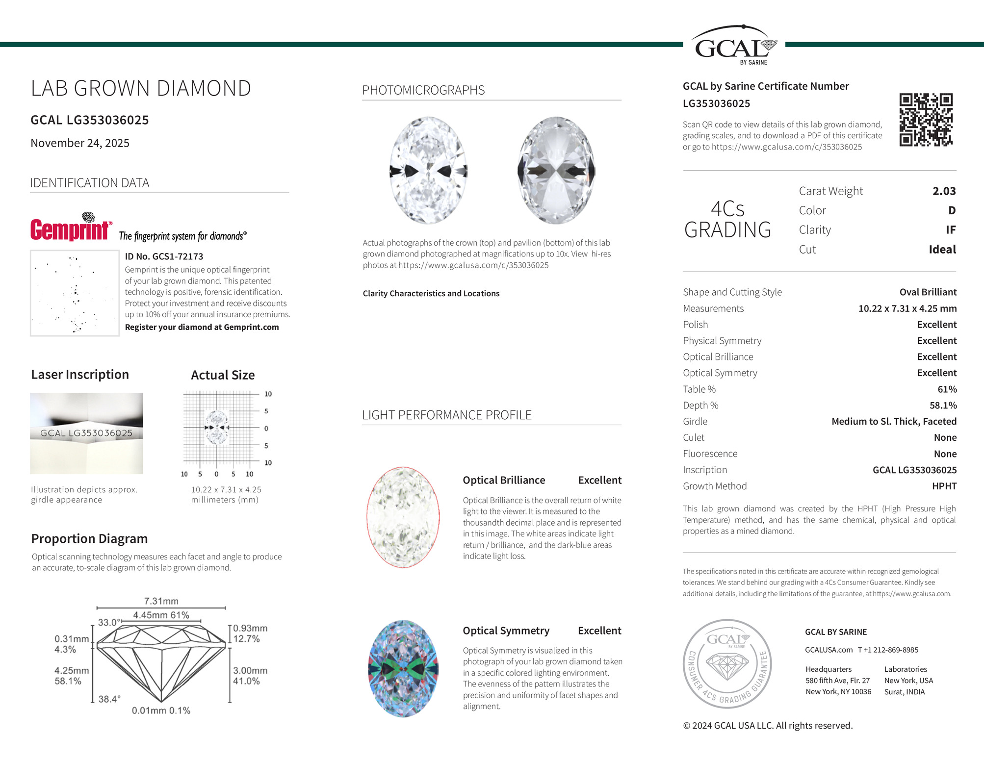 2.03 ct. D/IF Oval Lab Grown Diamond