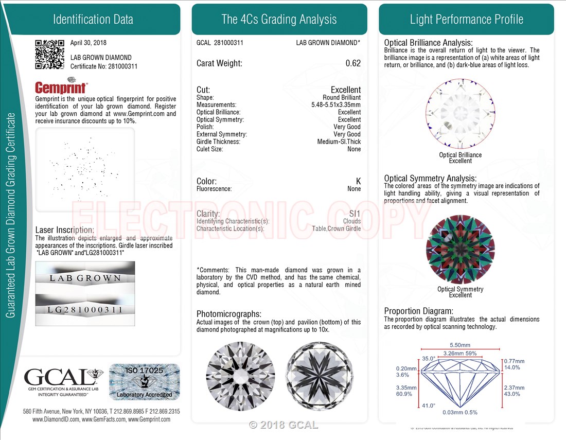 0.62 ct. K/VS2 Round Lab Grown Diamond