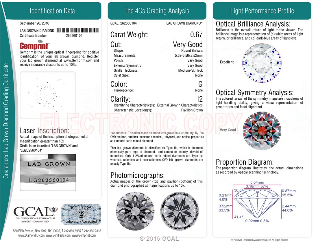 0.67 ct. G/I2 Round Lab Grown Diamond