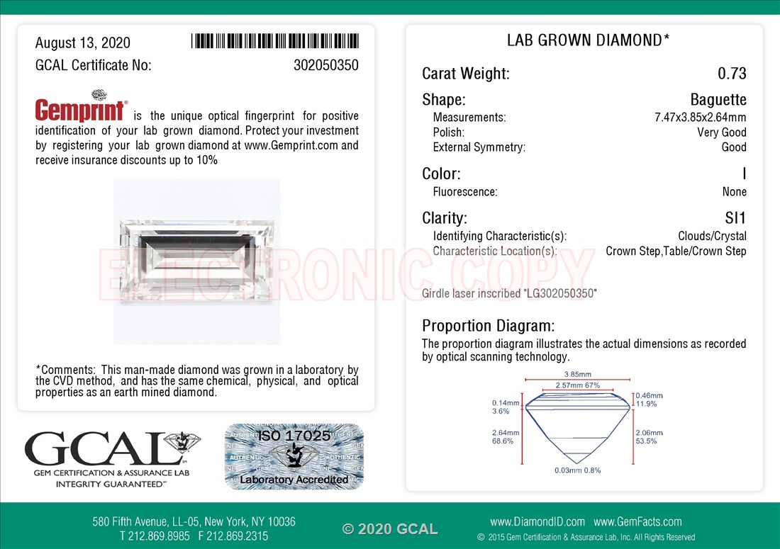 0.73 ct. I/SI1 Baguette Lab Grown Diamond