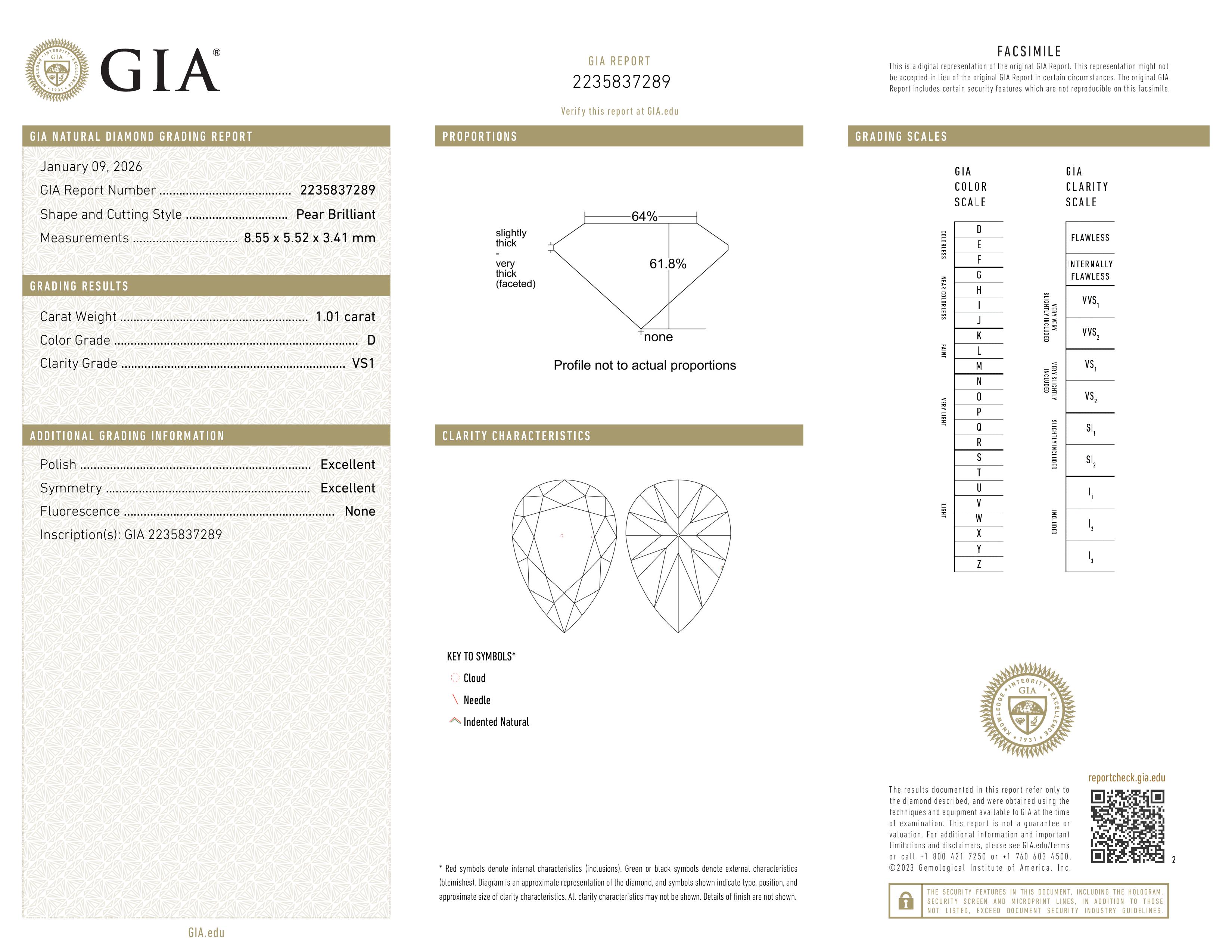 1.01 ct. D/VS1 Pear Diamond