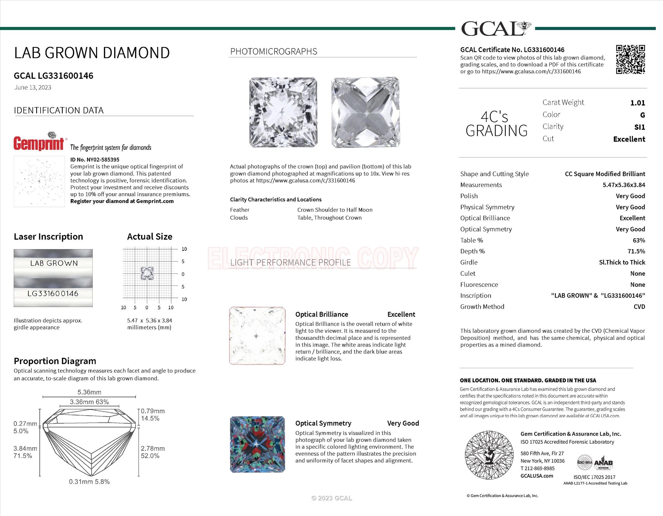 1.01 ct. G/SI1 Square Lab Grown Diamond
