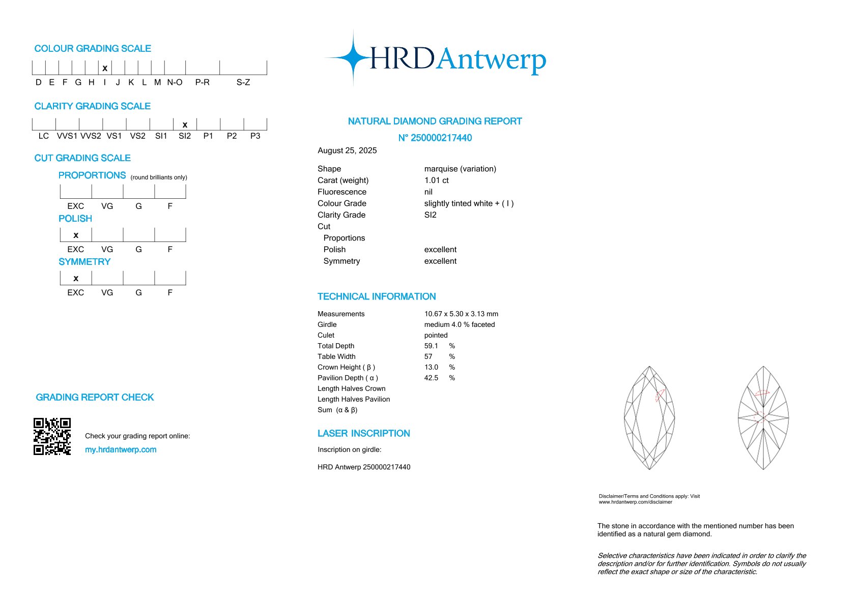 1.01 ct. I/SI2 Marquise Diamond