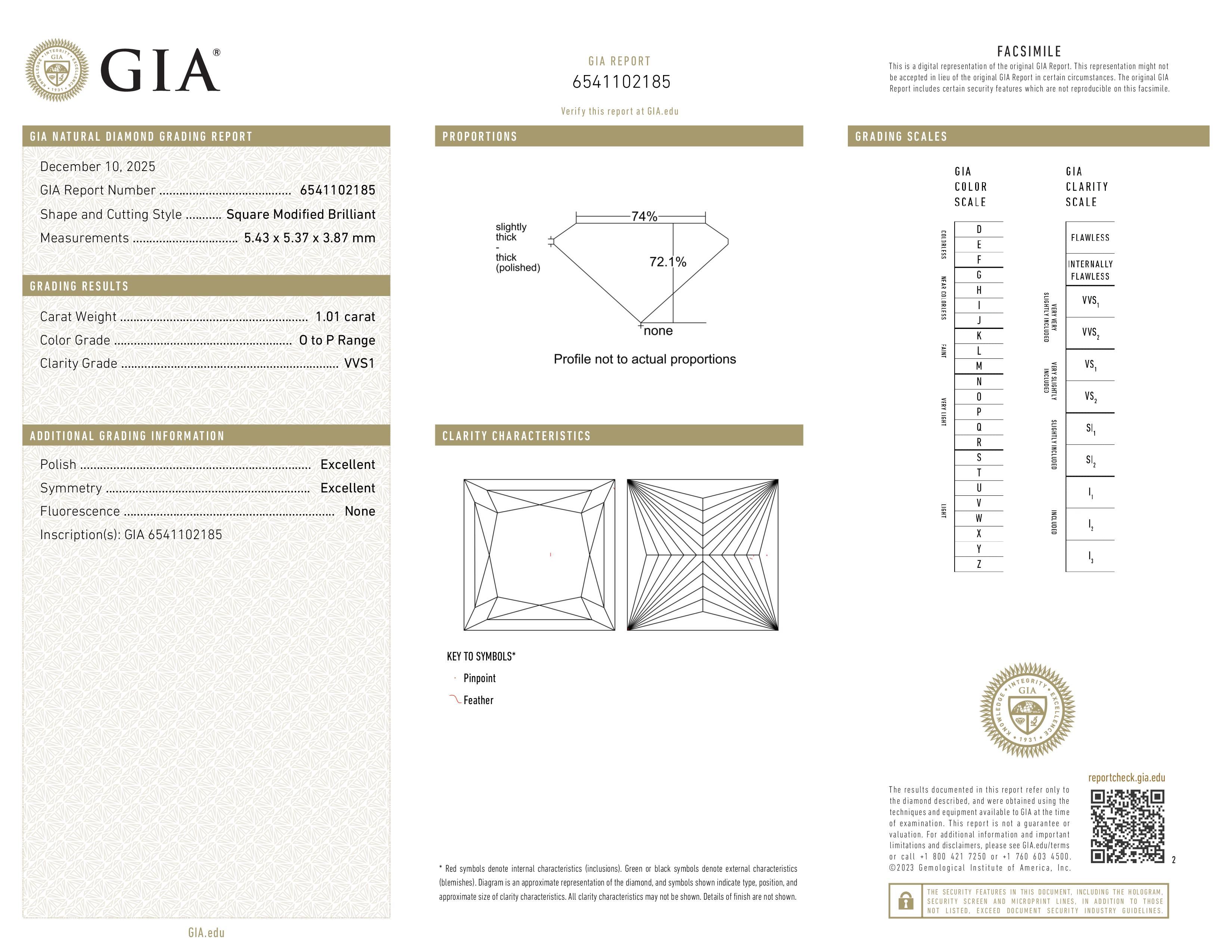 1.01 ct. O-P/VVS1 Princess Diamond