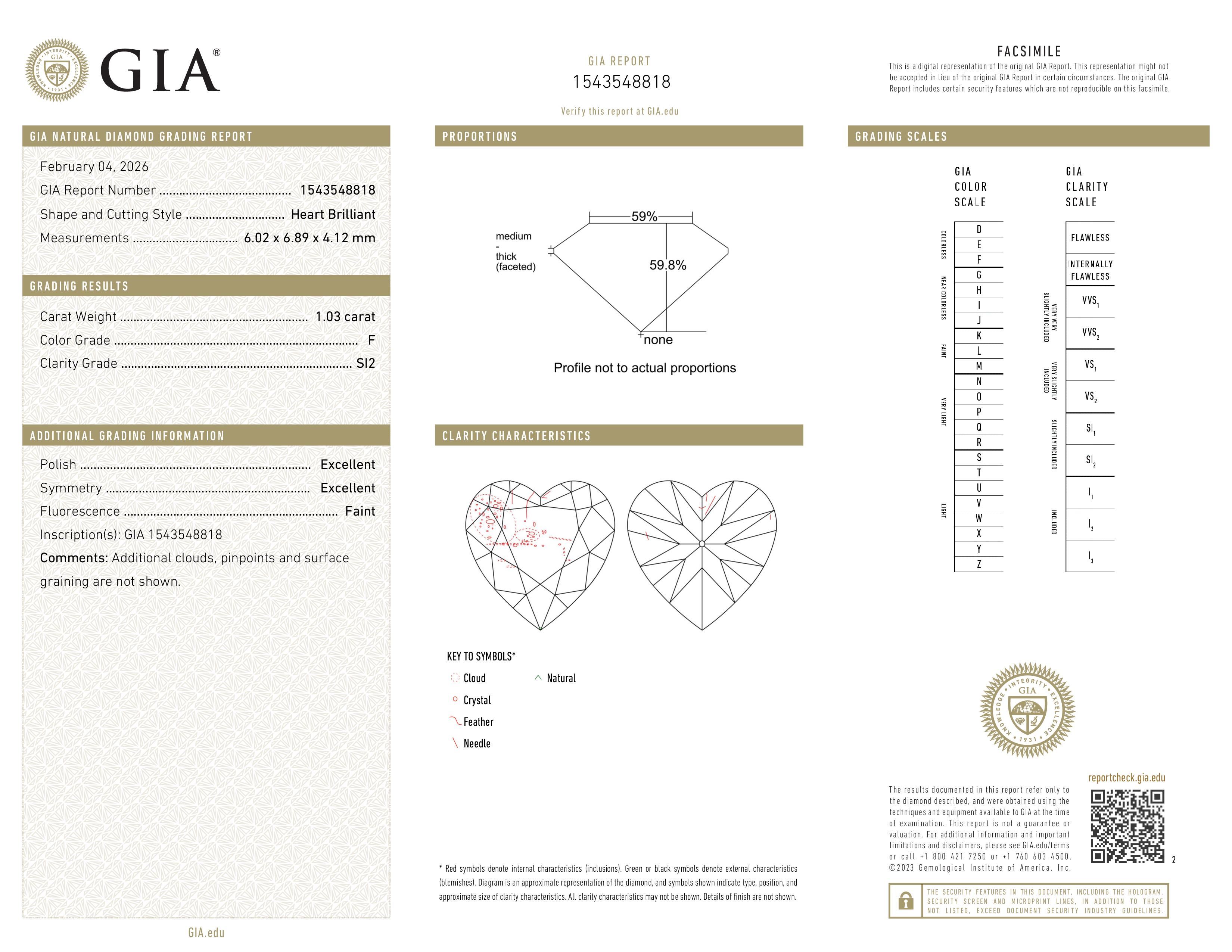 1.03 ct. F/SI2 Heart Diamond