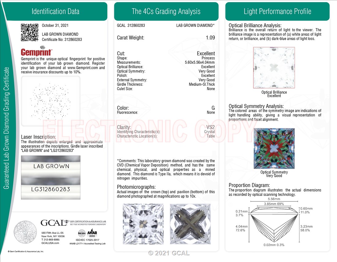 1.09 ct. G/VS2 Princess Lab Grown Diamond