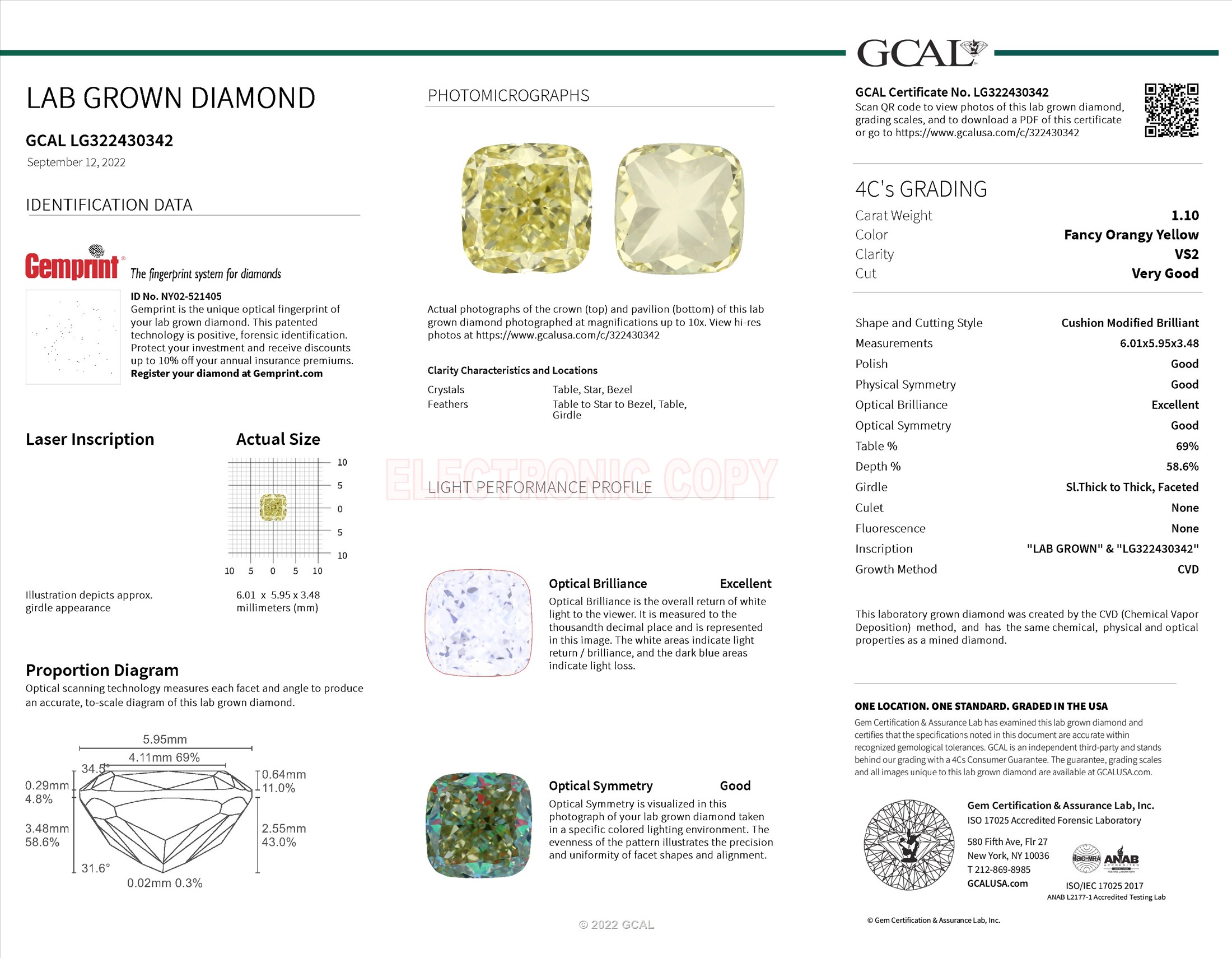 1.10 ct. Fancy Orangey Yellow/VS2 Cushion Lab Grown Diamond