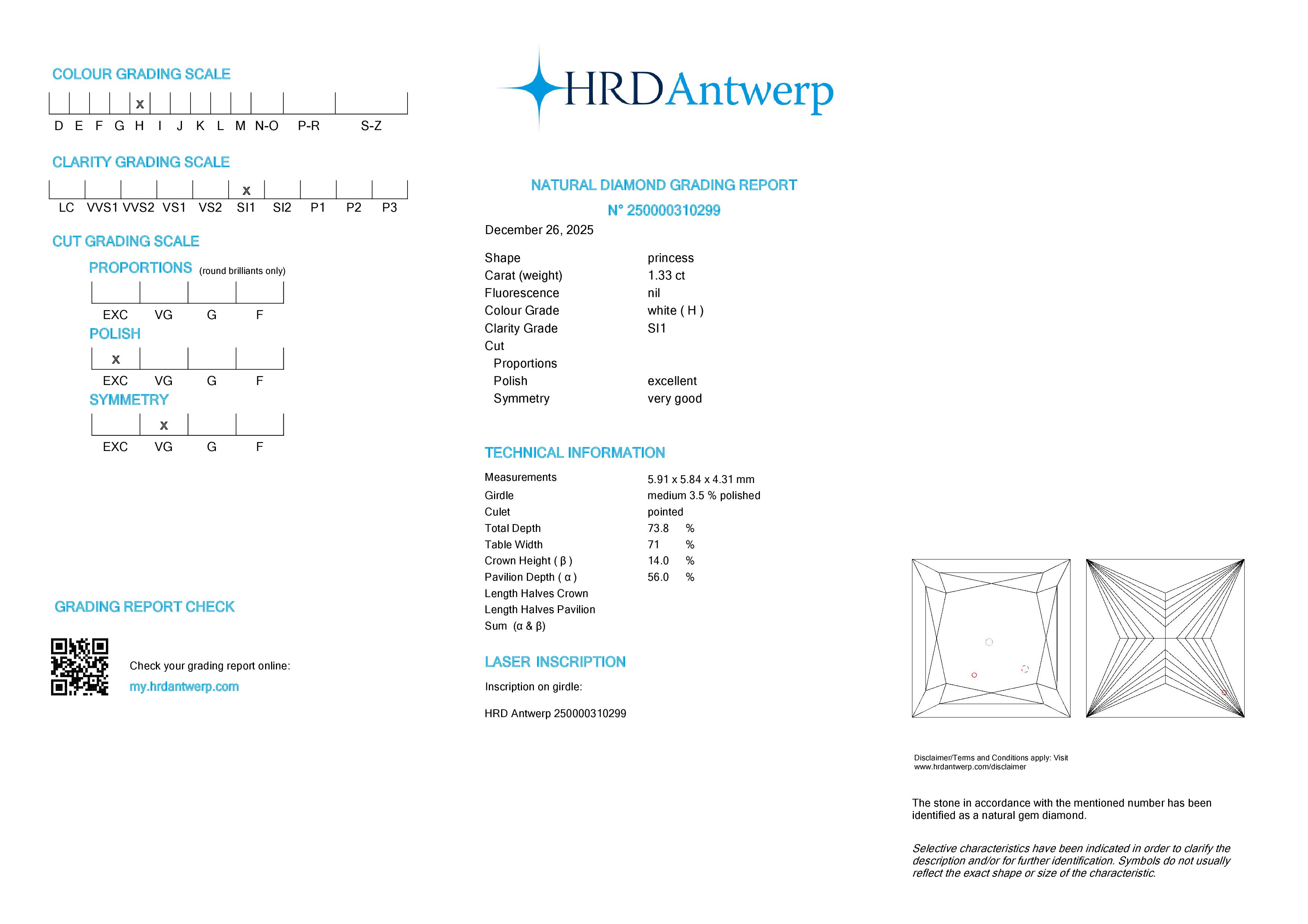 1.33 ct. H/SI1 Princess Diamond