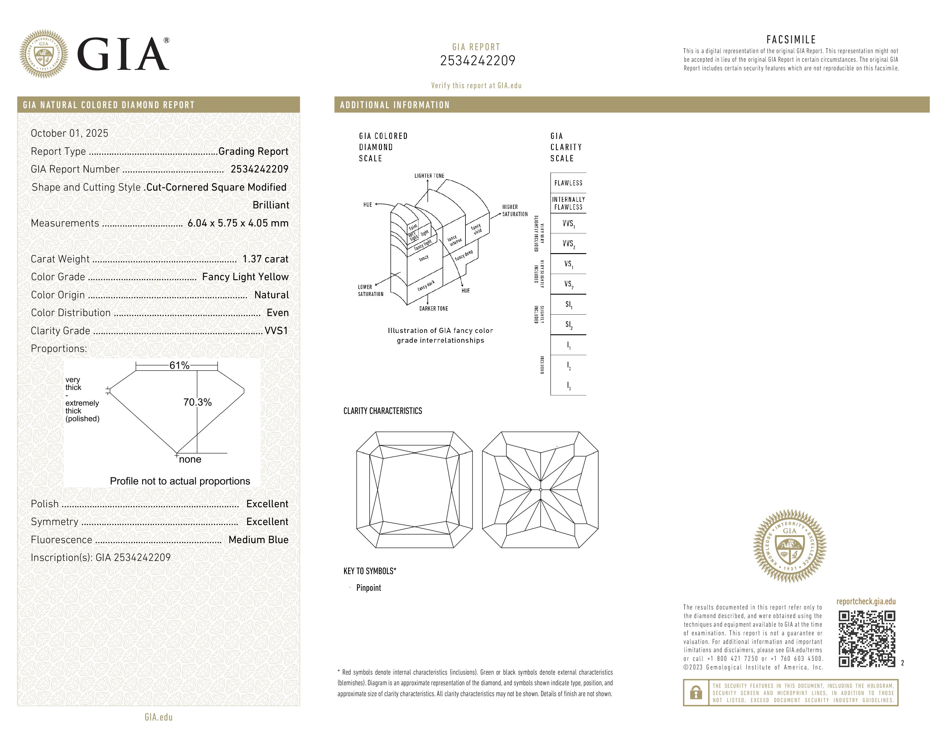 1.37 ct. Fancy Light Yellow/VVS1 Sq Diamond