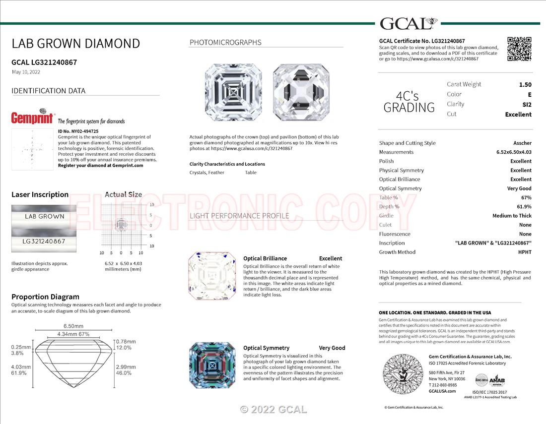 1.50 ct. E/SI2 Asscher Lab Grown Diamond