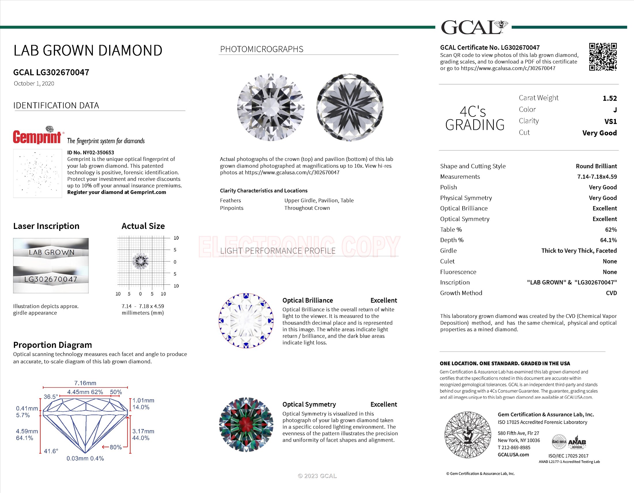 GCAL Certificate No.