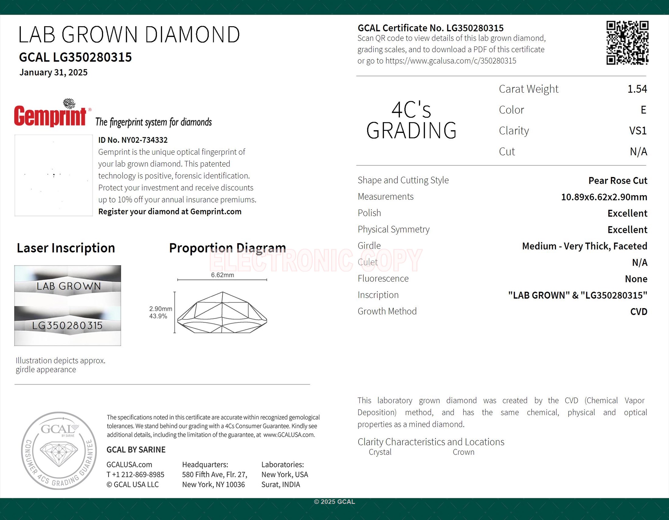 1.54 ct. E/VS1 Pear Lab Grown Diamond