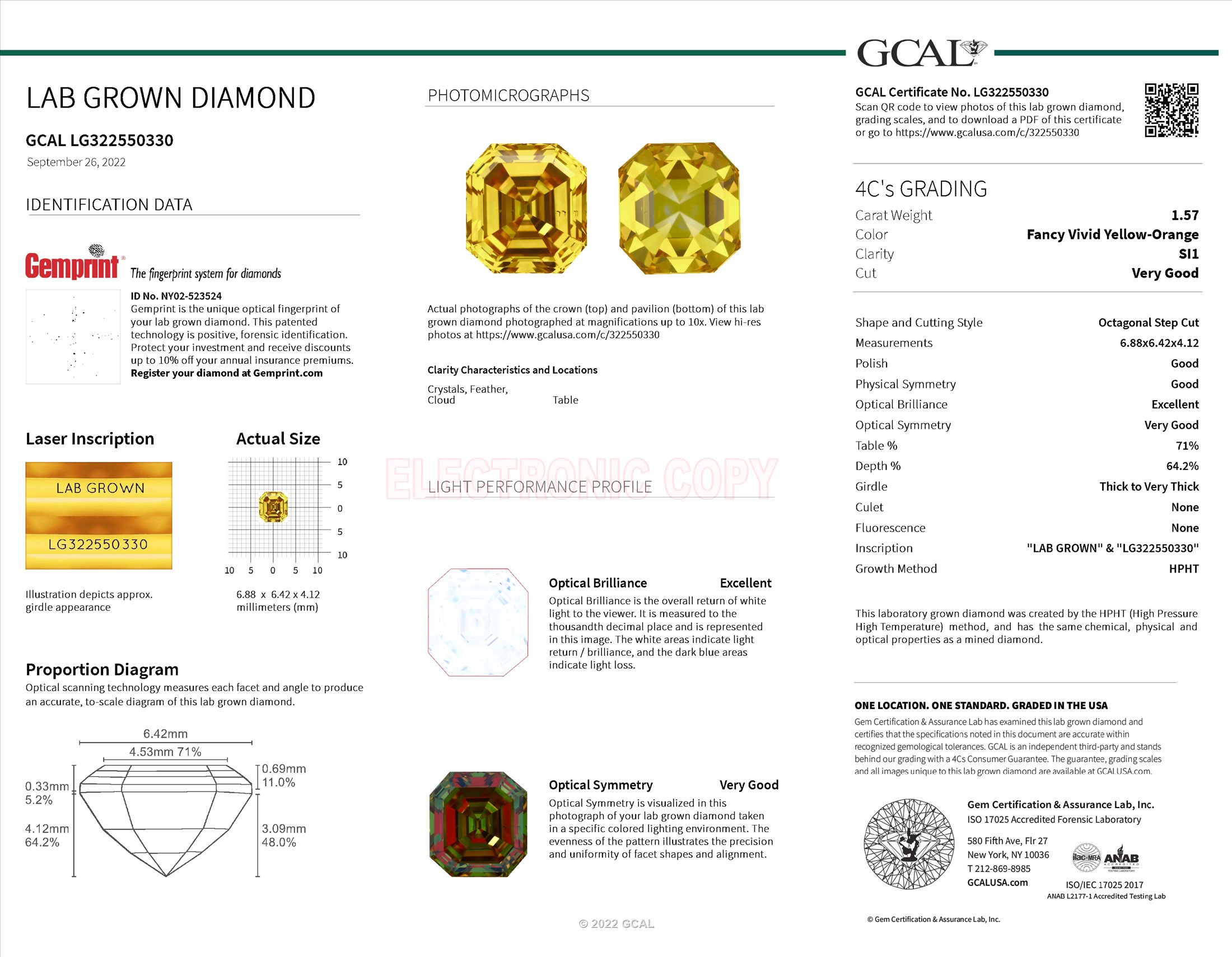 1.57 ct. Fancy Vivid Yellow/SI1 Octagonal Lab Grown Diamond