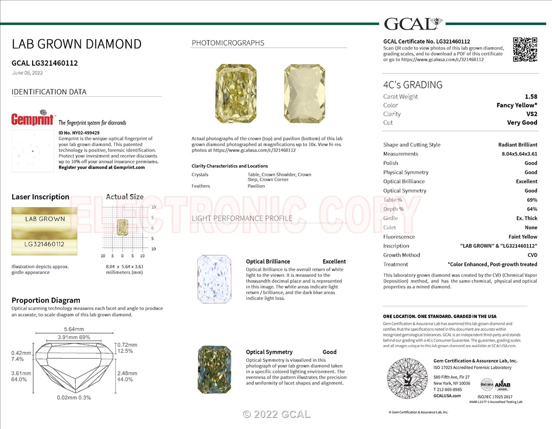 1.58 ct. Fancy Yellow/VS2 Radiant Lab Grown Diamond