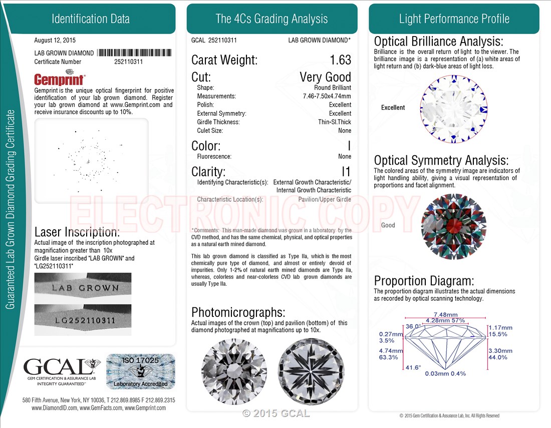 1.63 ct. I/I1 Round Lab Grown Diamond