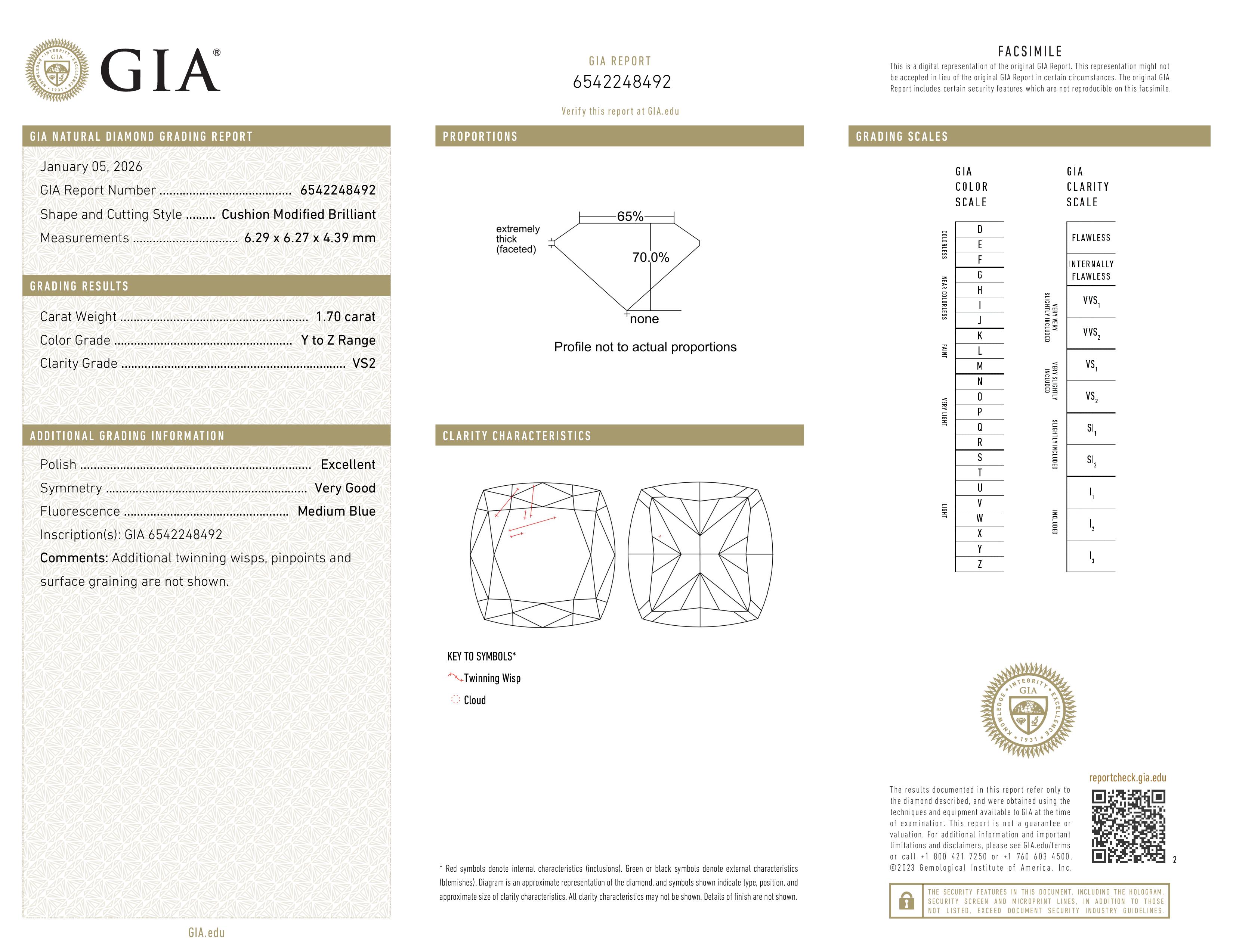 1.70 ct. Y-Z/VS2 Cushion Diamond