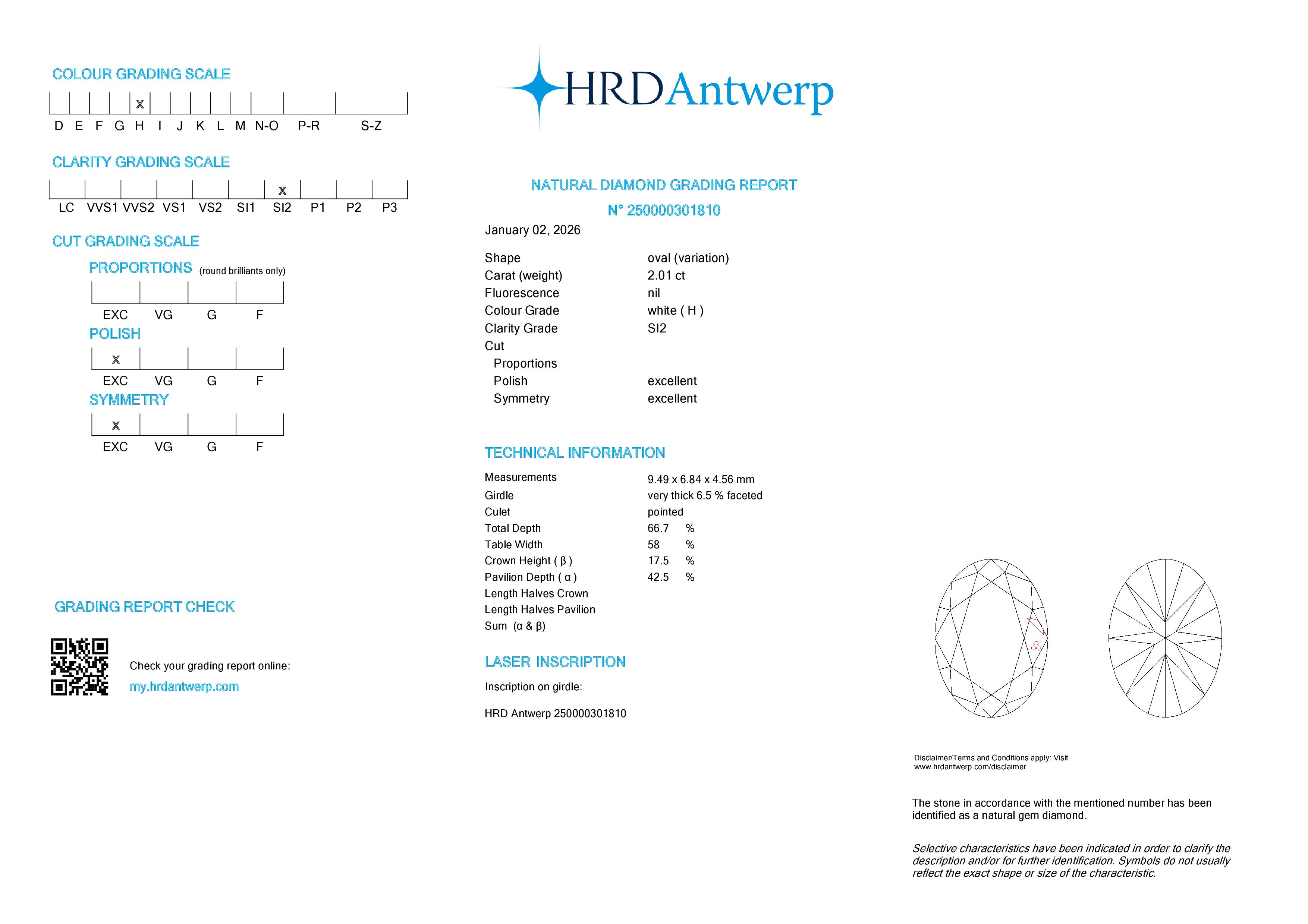 2.01 ct. H/SI2 Oval Diamond