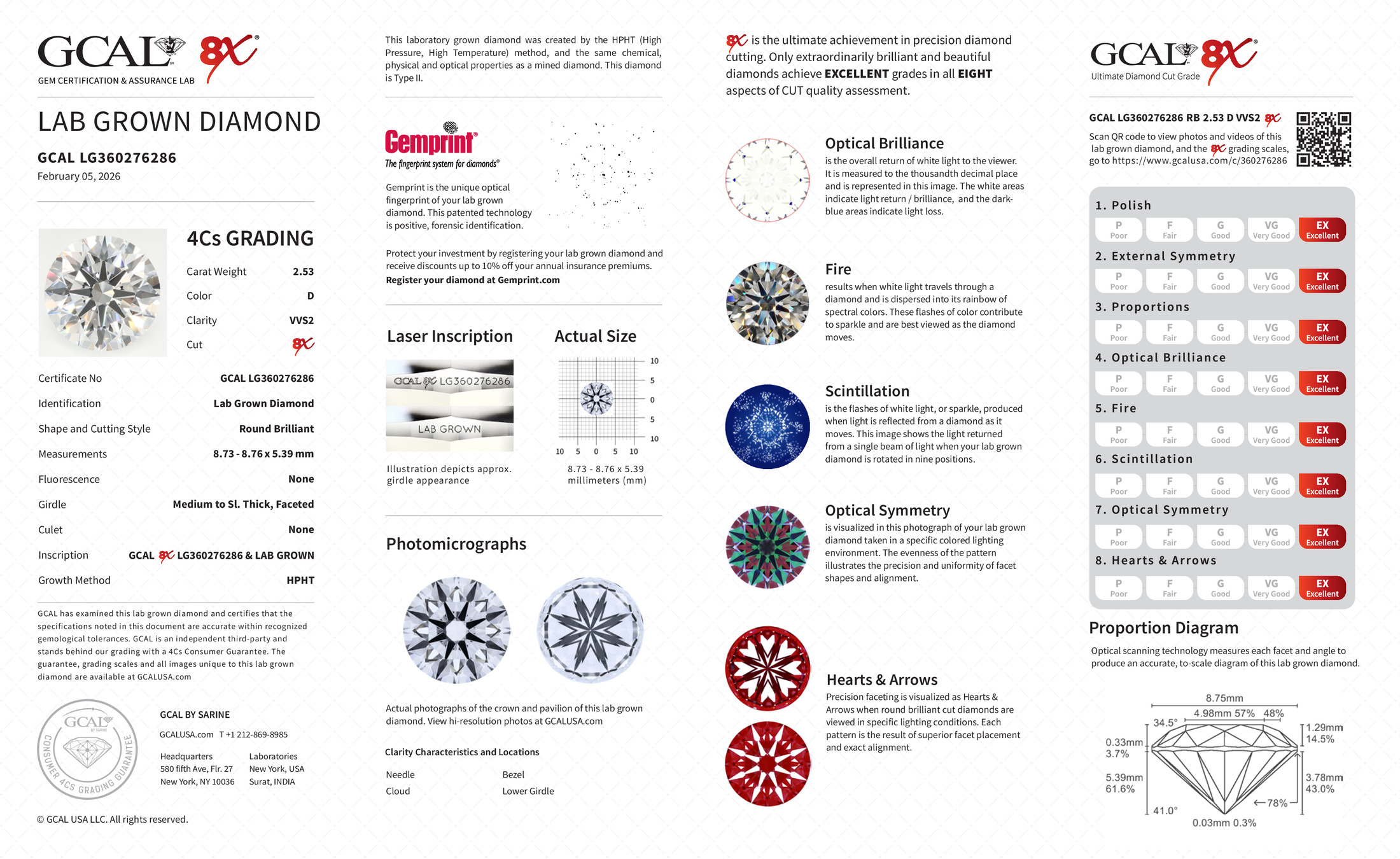 2.53 ct. D/VVS2 Round Lab Grown Diamond