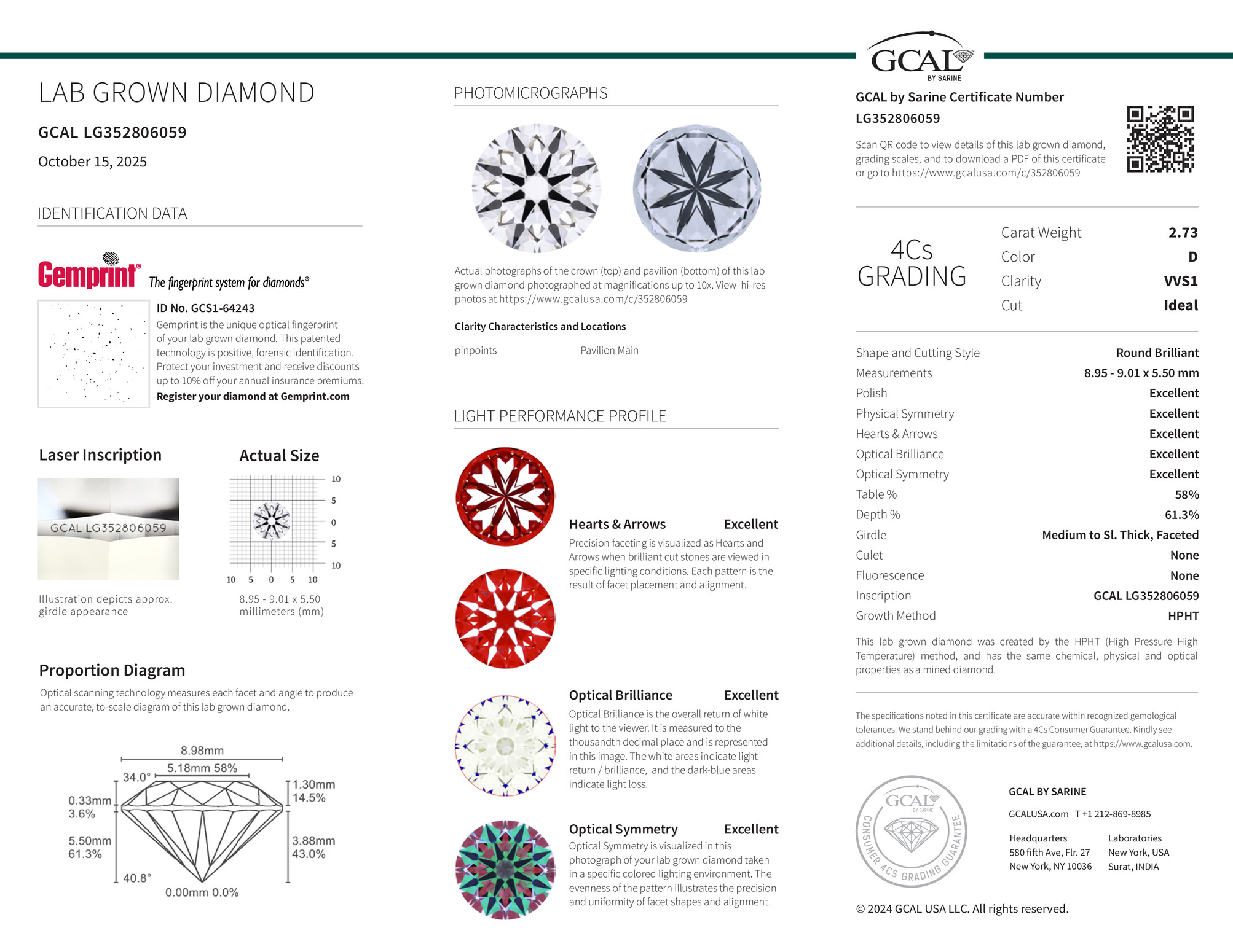 2.73 ct. D/VVS1 Round Lab Grown Diamond