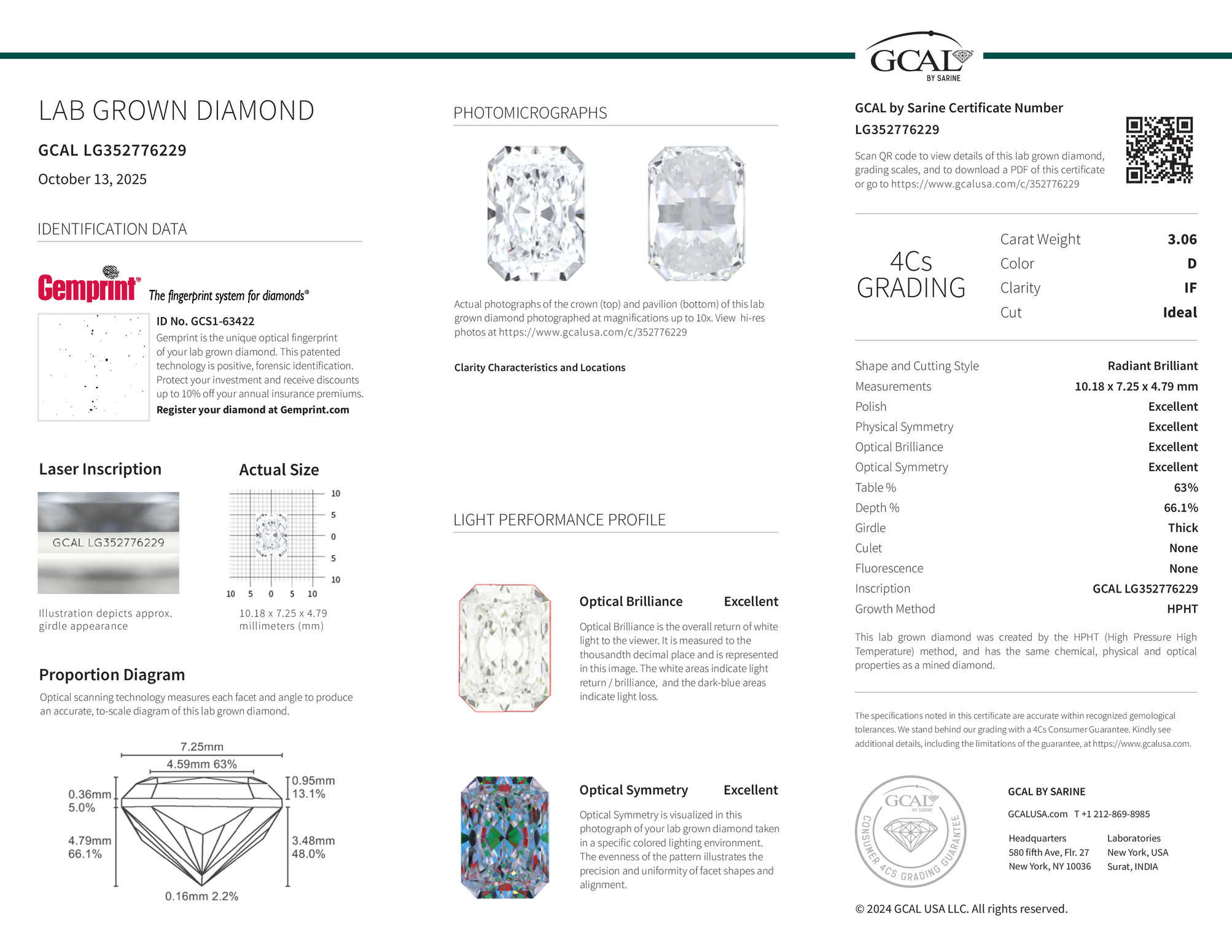 3.06 ct. D/IF Radiant Lab Grown Diamond