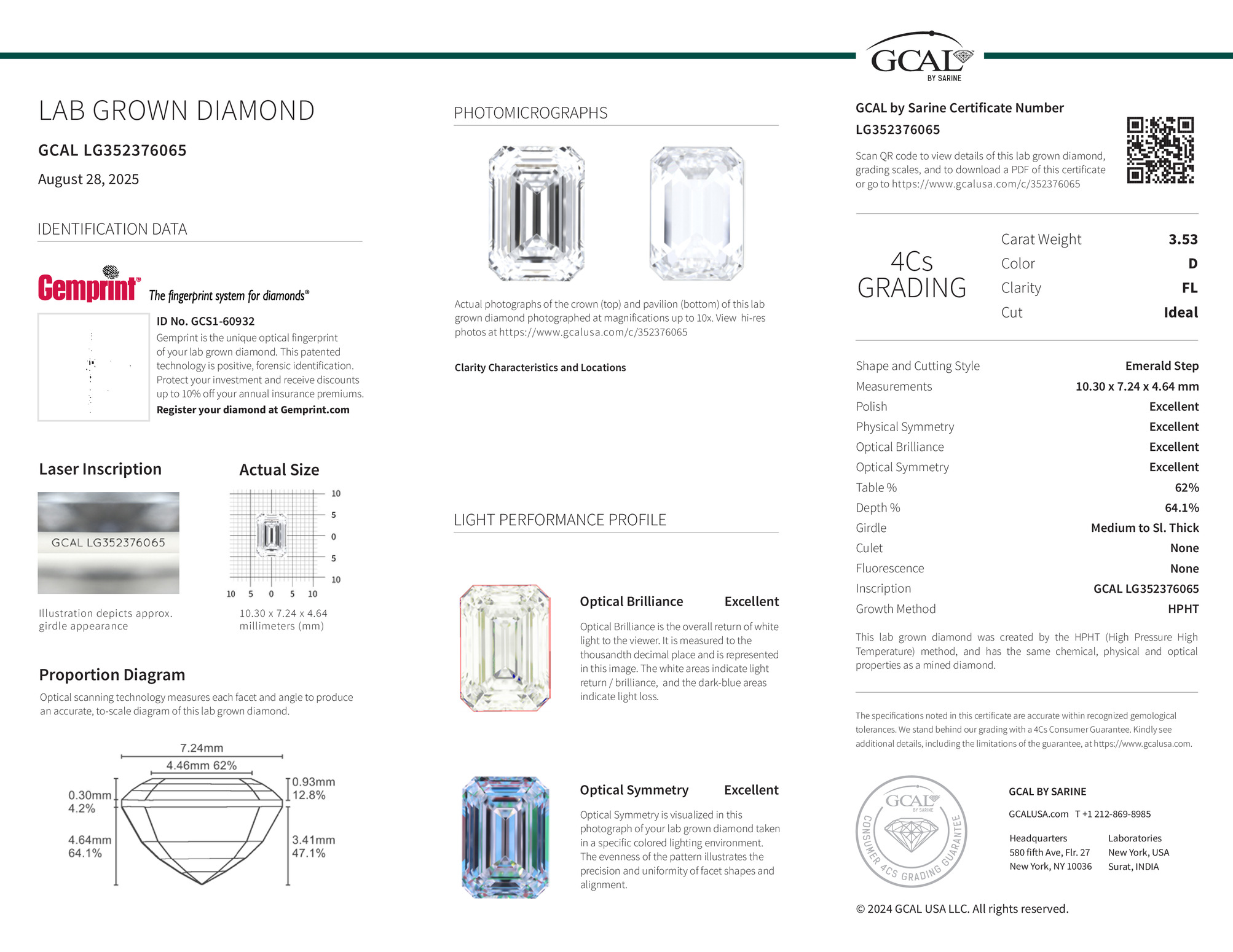 3.53 ct. D/FL Emerald Lab Grown Diamond
