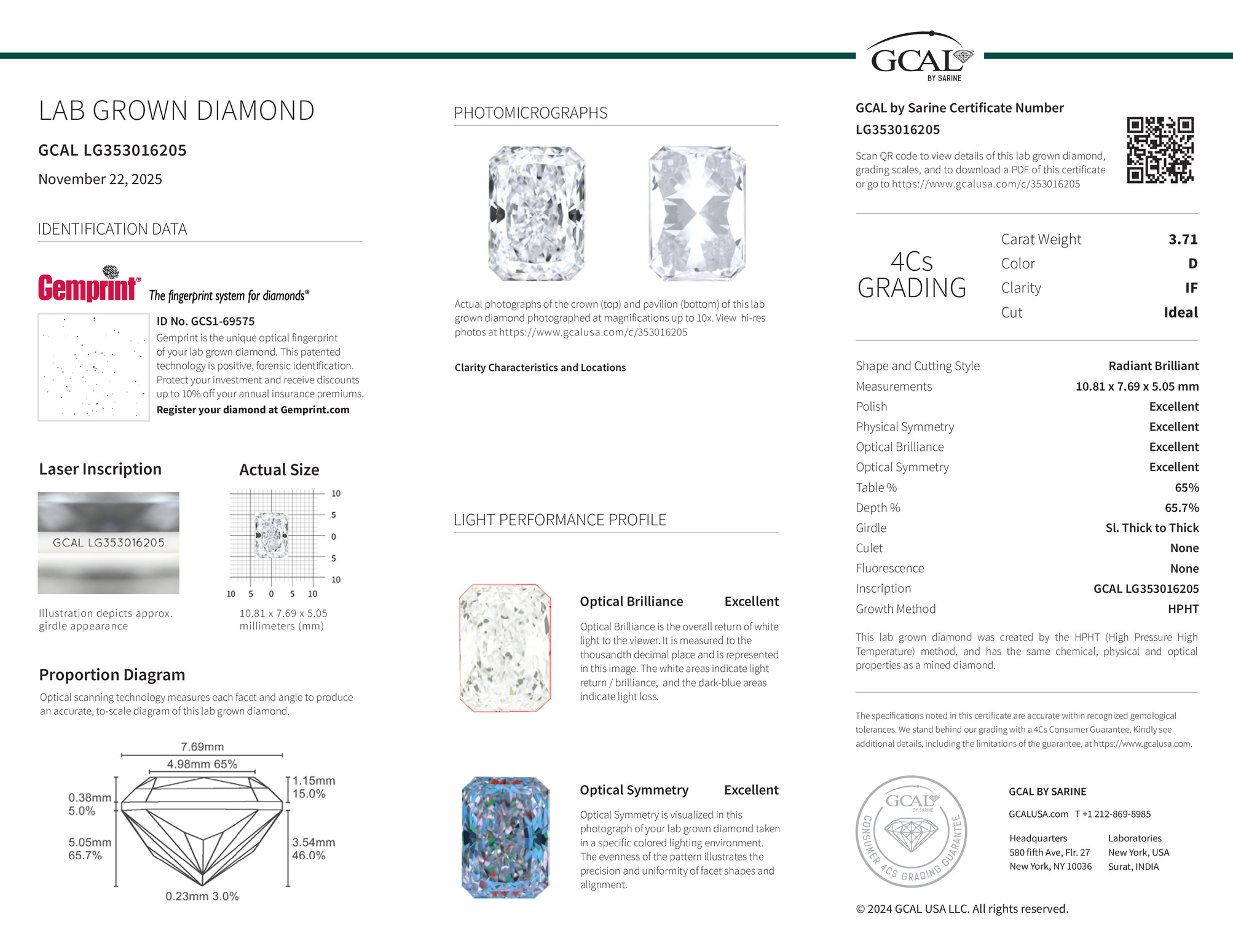 3.71 ct. D/IF Radiant Lab Grown Diamond